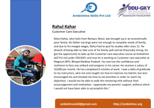Inspiring stories of our best performing candidates and their experience in Ambishine Skills…
